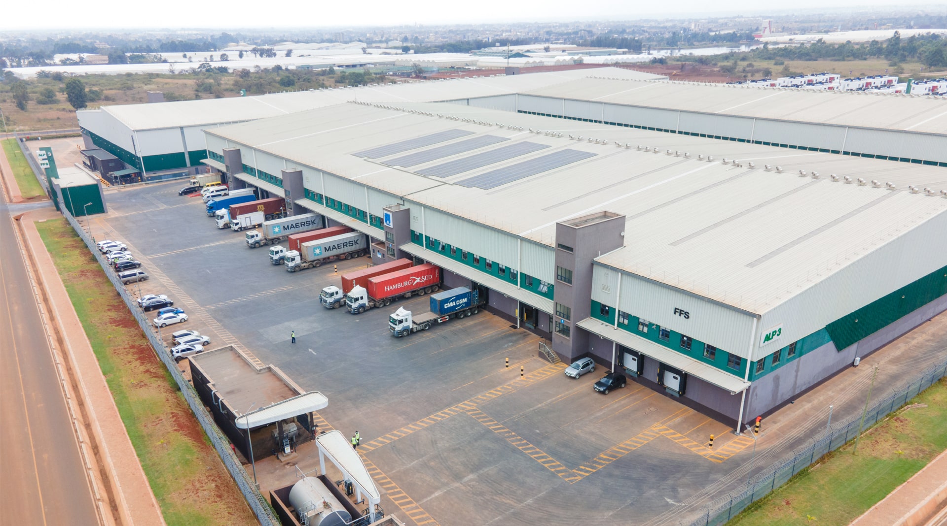 FFS operates a 14,000 sqm Grade‑A distribution centre in Tatu City, Nairobi, designed with 14 m ceilings and a custom racking configuration for maximum operational efficiency. As the first warehouse in Africa to receive Green Edge certification, the facility delivers tailored warehousing, inventory management, last‑mile delivery, and value-added logistics services across Kenya and the region.